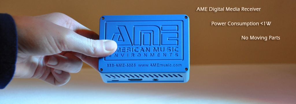 The AME Receiver is a simple plug & play installation. Simply plug the AME-2020 Digital Media System into a network connection and your sound system.